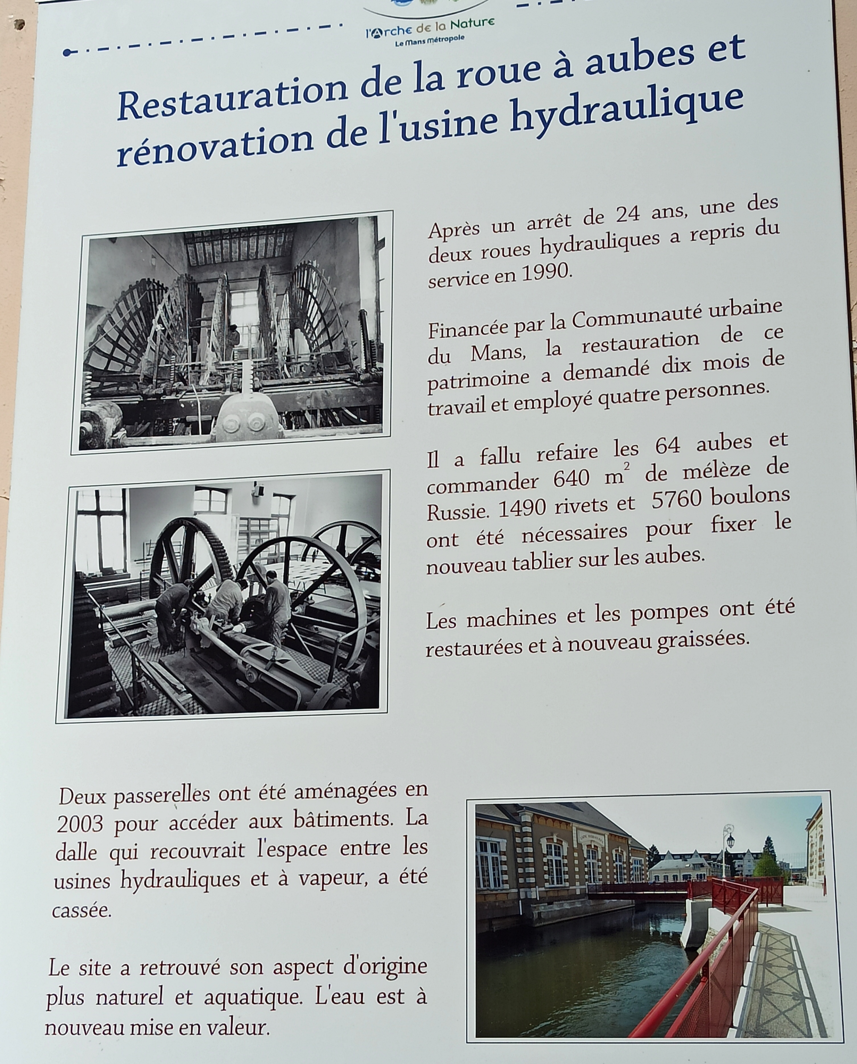 Lieu bien réaménagé qui permet la découverte de curiosités telle que l'éolienne Bollée ou des mécanismes bien mis en valeur. Lieu de passage avec sa passerelle pour les bois de Changé.