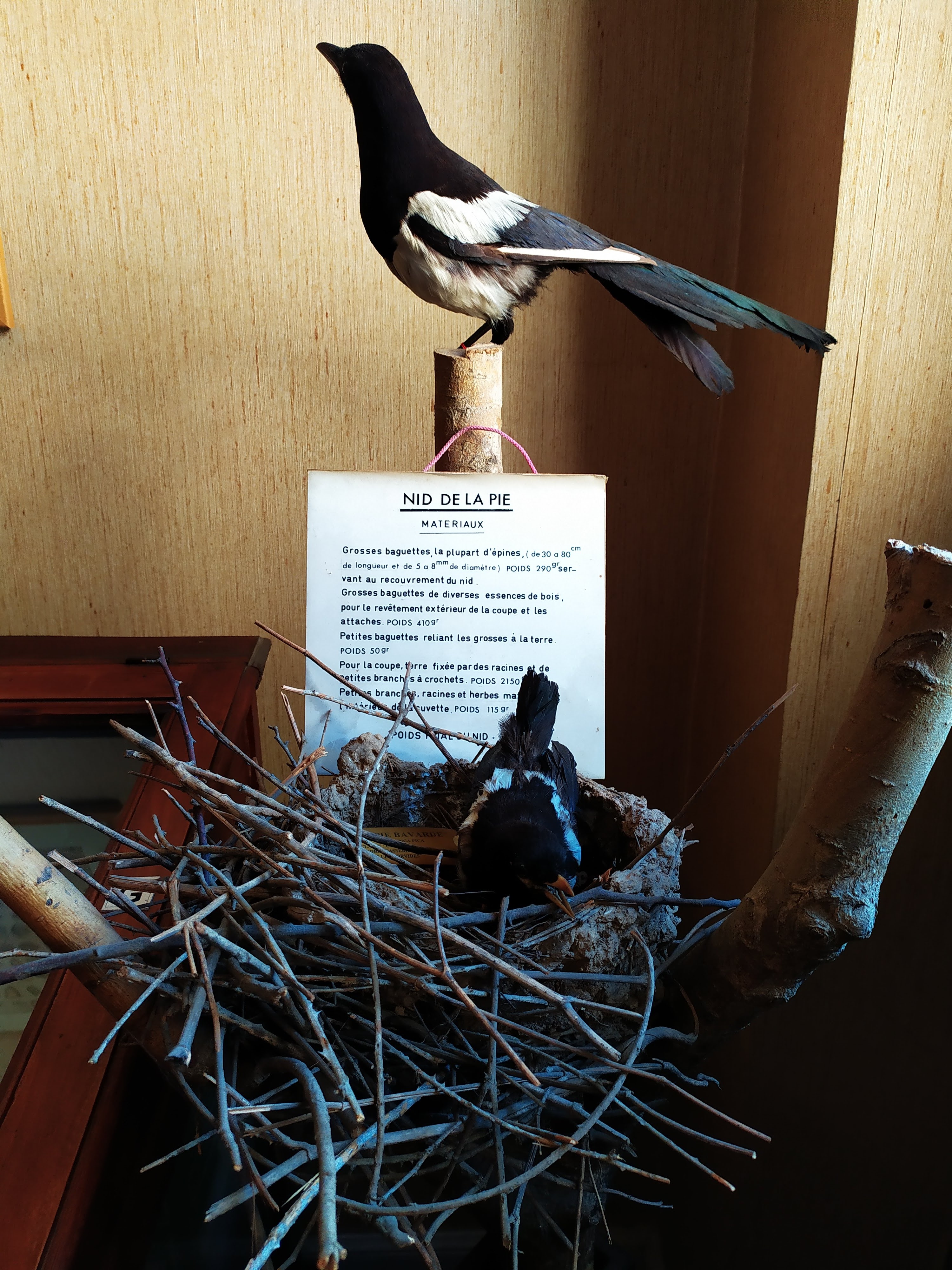 Musée à l'ancienne avec vitrines, papillons cloués et animaux empaillés. Amusant.