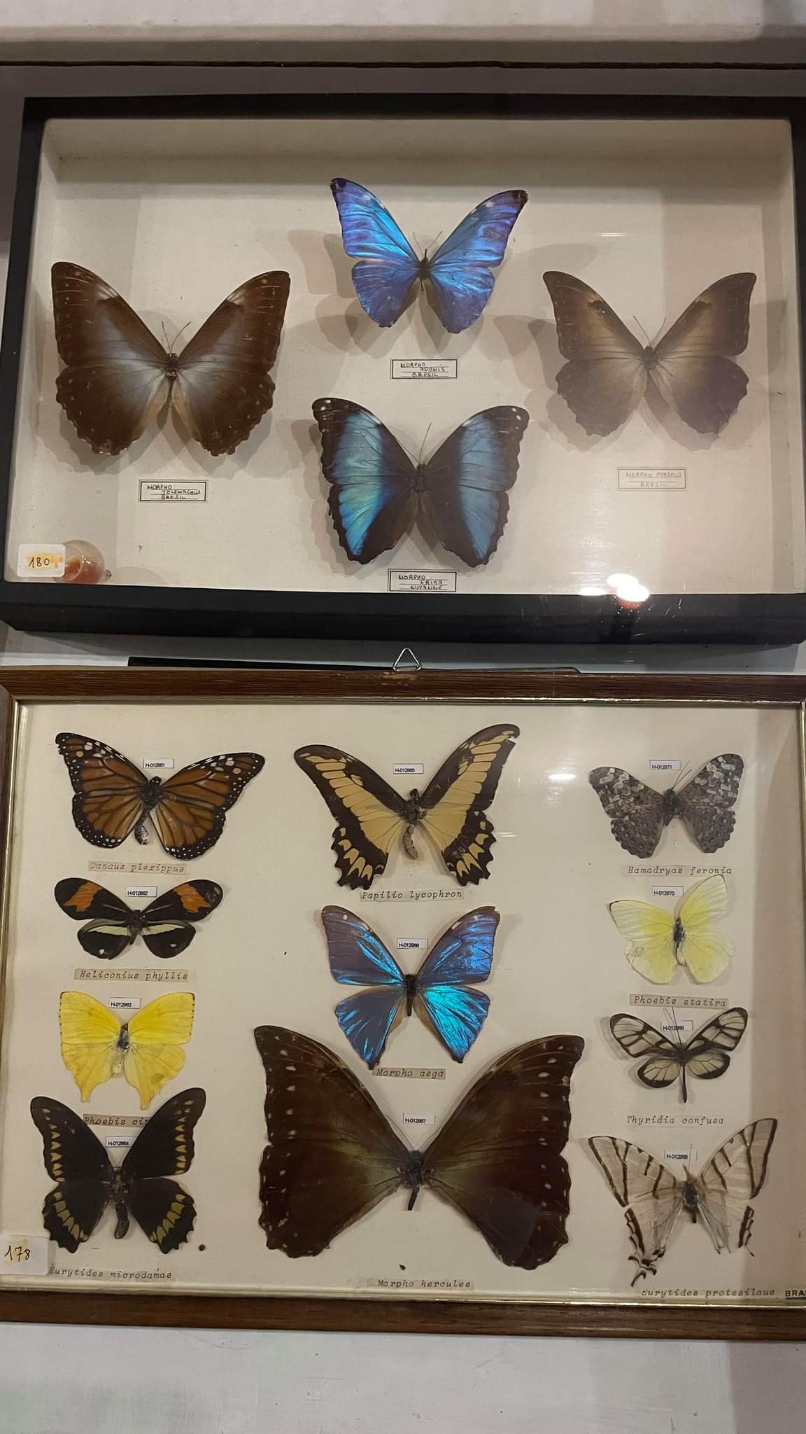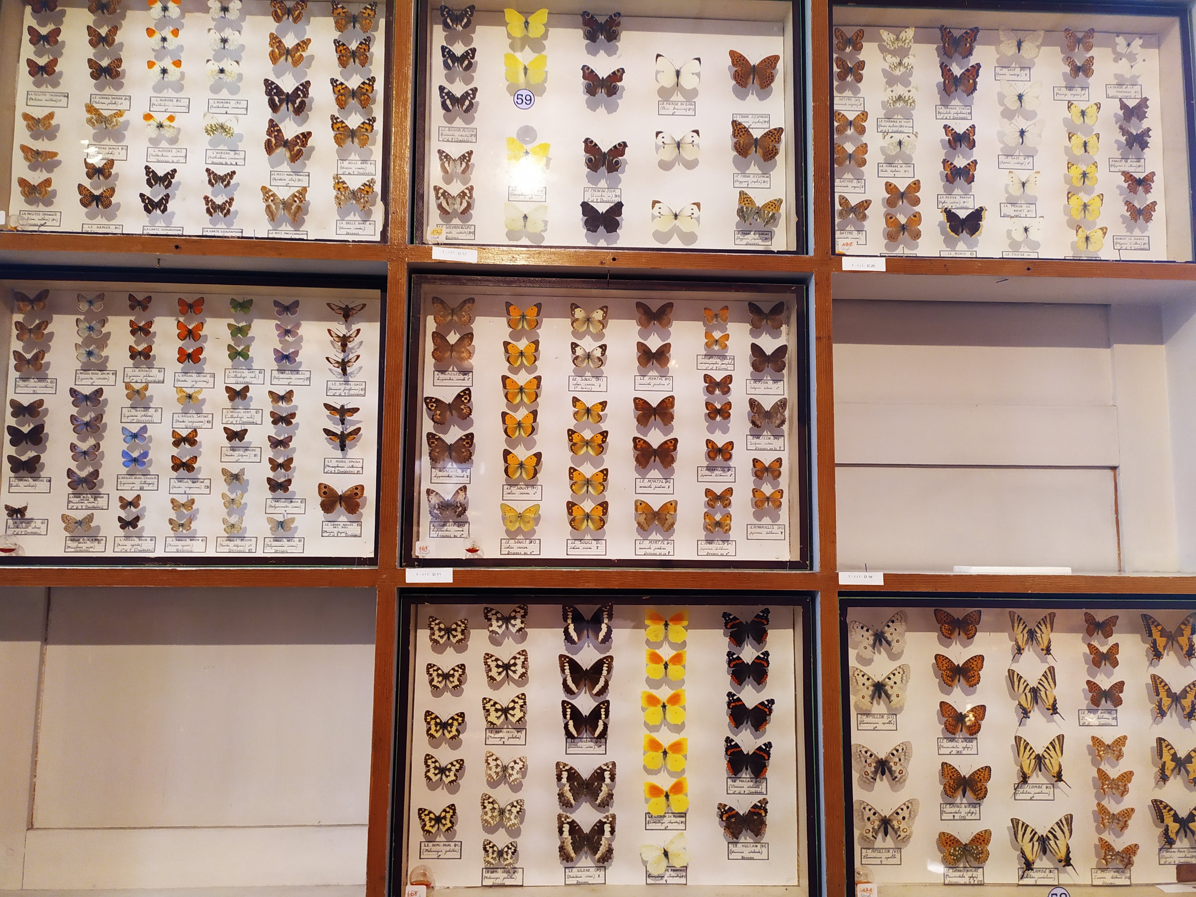 Musée à l'ancienne avec vitrines et parquet. Belle collection d'insectes naturalisés